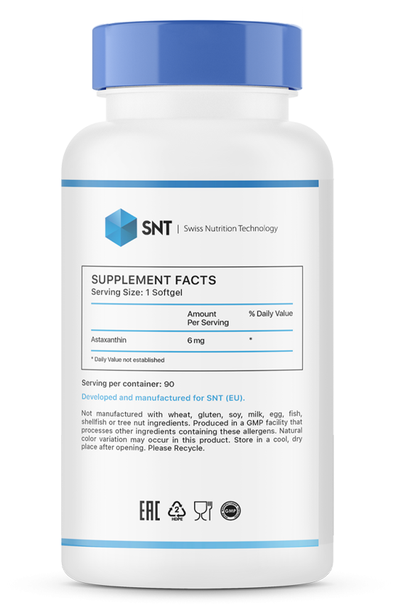 Астаксантин - это универсальное питательное вещество, несущее пользу для здоровья. Было показано, что он снимает общую усталость глаз и способствует здоровой воспалительной реакции. Астаксантин помогает оптимизировать здоровье иммунной системы, памяти, сердечно-сосудистой системы, обмена веществ и митохондрий. Он даже способен поддерживать здоровые когнитивные функции и повышать мышечную силу и выносливость.