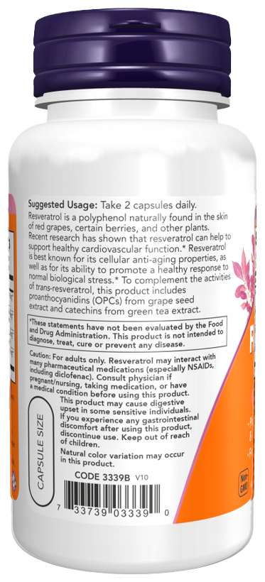 NOW Natural Resveratrol 50 mg, 60 капсул