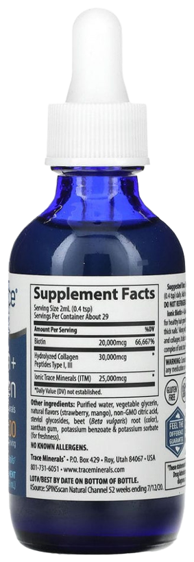 Trace Minerals Ionic Biotin + Collagen, 59 мл