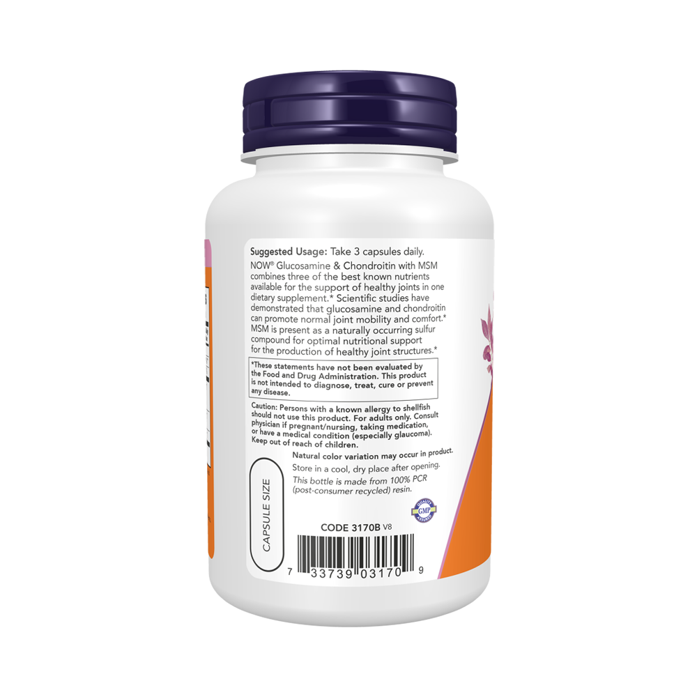 NOW Глюкозамин и хондроитин с метилсульфонилметаном сочетают в себе три наиболее известных питательных вещества, необходимых для поддержания здоровья суставов, в одной пищевой добавке. Глюкозамин и хондроитин способствуют нормальной подвижности и комфорту суставов. Метилсульфонилметан является природным соединением серы, обеспечивающим оптимальную питательную поддержку для формирования здоровых суставных структур.