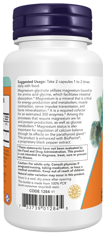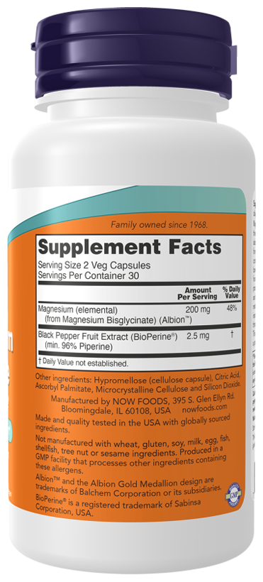 NOW Magnesium Glycinate with BioPerine, 60 капсул