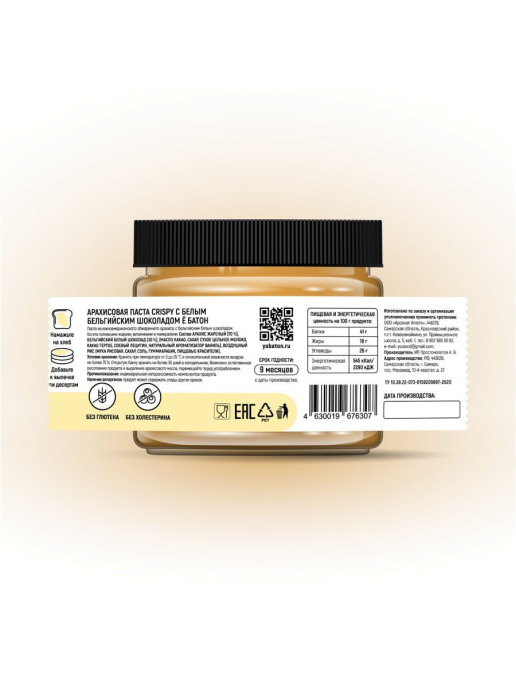 ЁБАТОН Арахисовая паста Crispy с белым бельгийским шоколадом (300гр.)