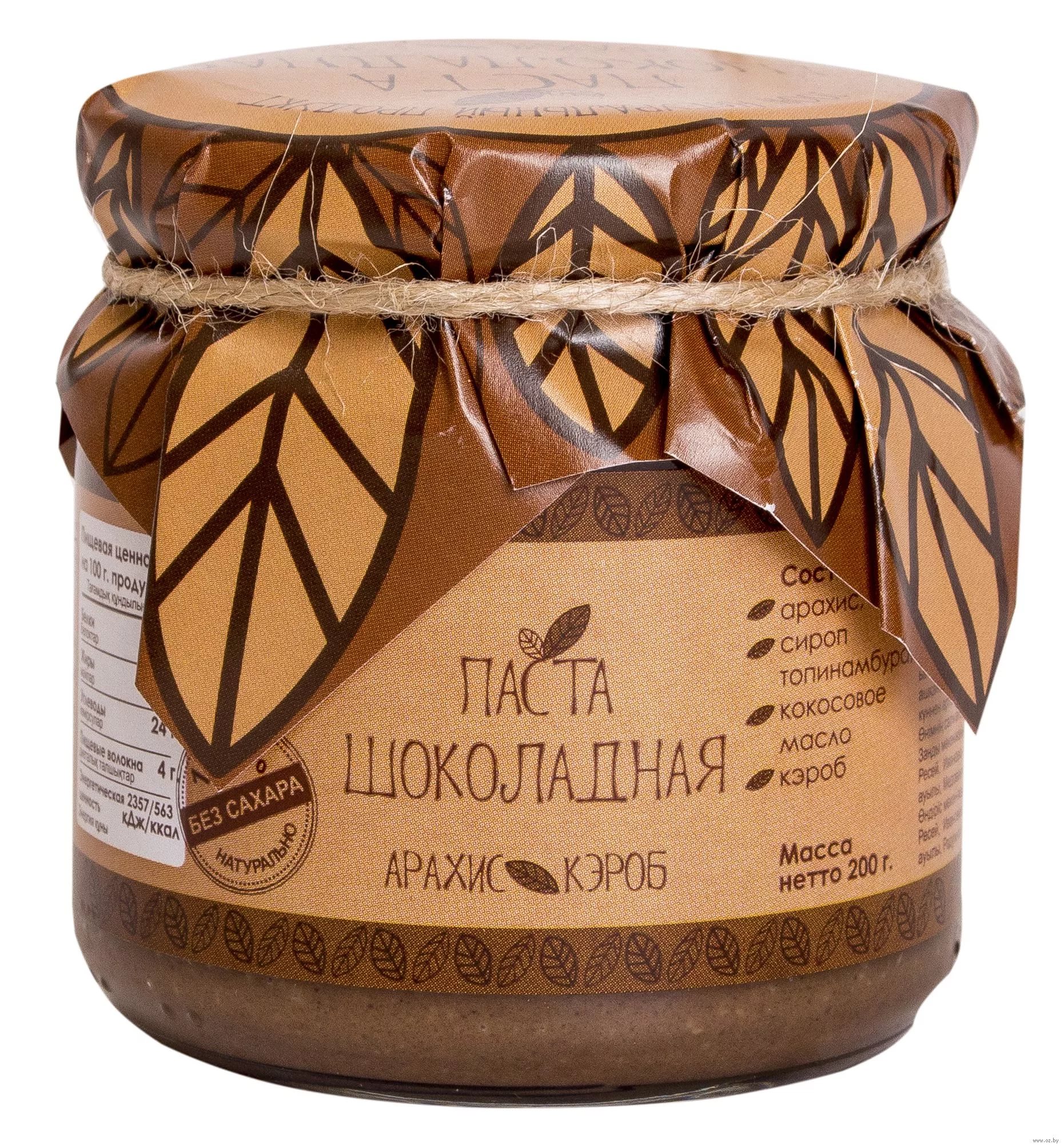 Предлагаем Вашему вниманию настоящий подарок для сладкоежек – Шоколадную пасту. Приятный вкус арахиса, насыщенный аромат шоколада от кэроба, нежность кокосового масла и сладость сиропа из топинамбура придает пасте не только непревзойденный вкус, но и приносит пользу для всего организма.