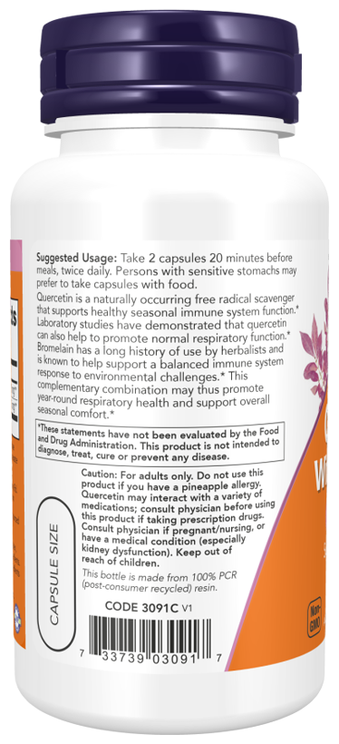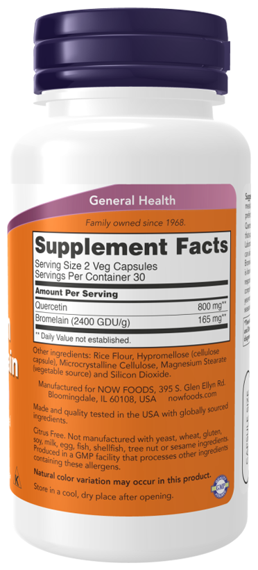 NOW Quercetin With Bromelain, Кверцетин с Бромелайном, 60 капсул