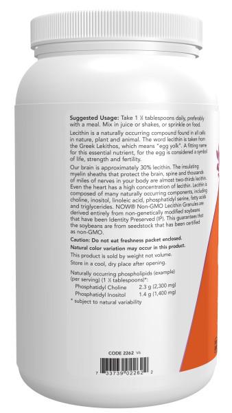 Наш мозг примерно на 30% состоит из лецитина. Изолирующие миелиновые оболочки, которые защищают мозг, позвоночник и тысячи километров нервов в вашем теле, почти на две трети состоят из лецитина. Даже в сердце присутствует высокая концентрация лецитина. Лецитин состоит из многих природных компонентов, включая холин, инозитол, линолевую кислоту, фосфатидилсерин, жирные кислоты и триглицериды. Лецитин в гранулах без ГМО от NOW® полностью получен из не генетически модифицированных соевых бобов с прослеживаемым происхождением. Это гарантирует, что соевые бобы выращены из семян, сертифицированных как не содержащие ГМО.