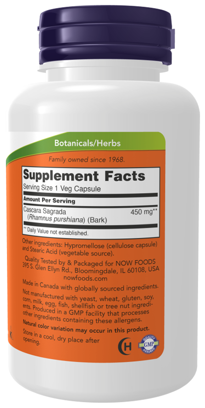 NOW Cascara Sagrada 450 mg, 100 капсул