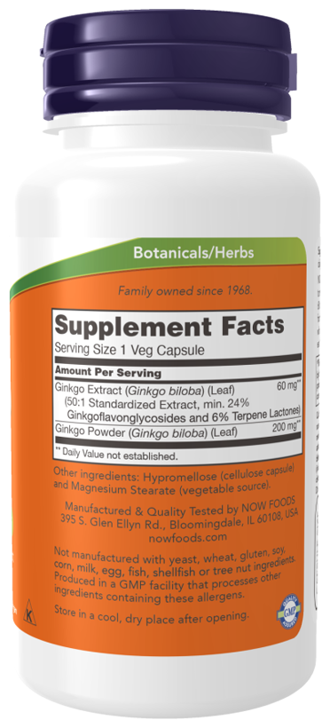 NOW Ginkgo Biloba 60 mg (60кап.)
