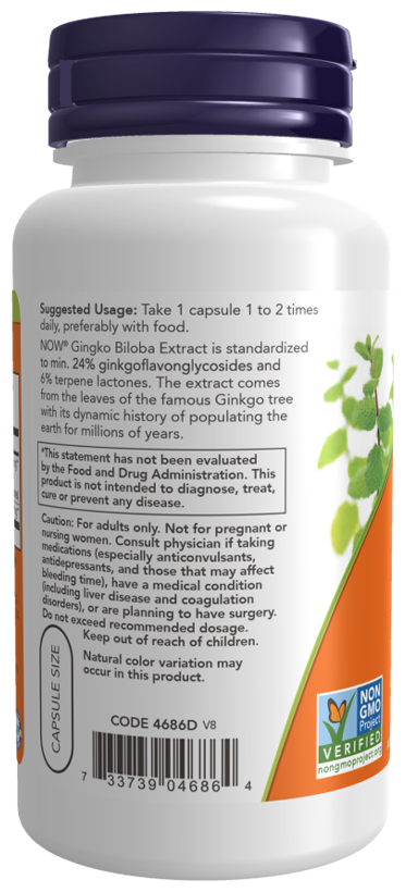NOW Ginkgo Biloba 60 mg, 60 капсул