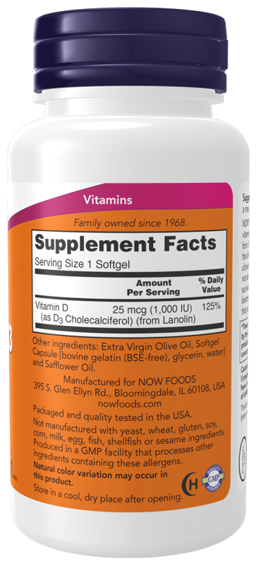 NOW Vitamin D-3 1000 IU, 360 капсул