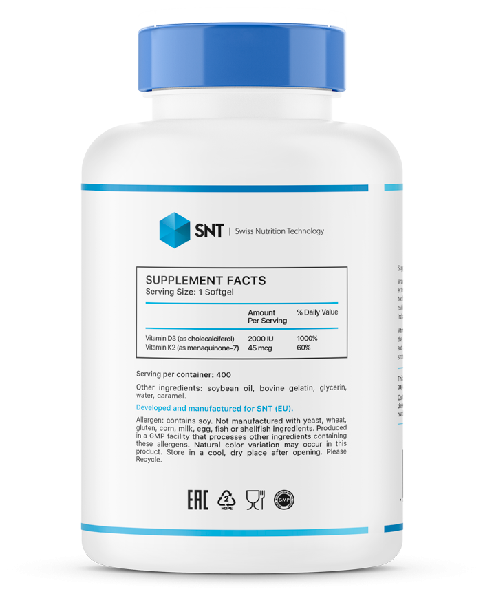 SNT Vitamin D3 + K2 2000 IU, 400 капсул