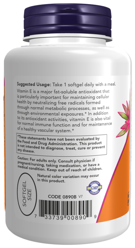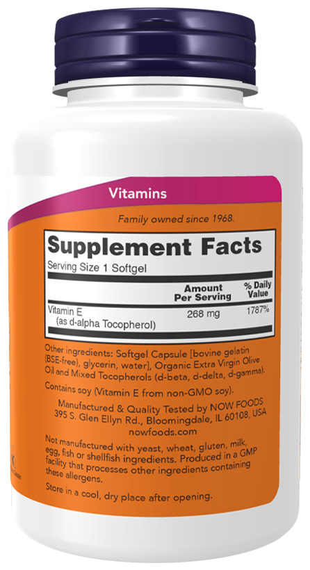NOW Vitamin E-400 With Mixed Tocopherols, 100 капсул