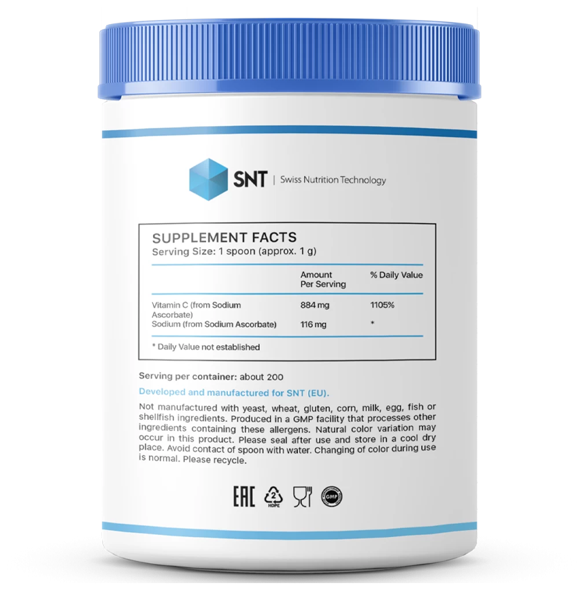 Аскорбат натрия - это минеральная соль, полученная из аскорбиновой кислоты, то есть одна из форм витамина C. В отличие от аскорбиновой кислоты, аскорбат натрия является забуференной формой, что делает его более мягким для желудочно-кишечного тракта.