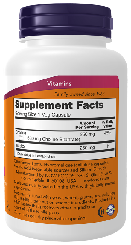NOW Choline & Inositol 250/250 mg (100кап.)