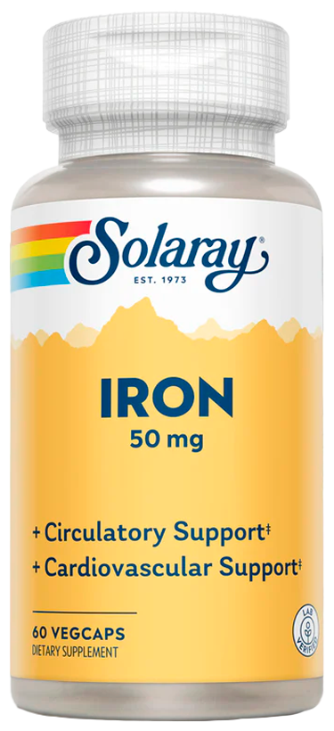 Solaray Iron50 мг - легкоусвояемый аминокислотный хелат железа.